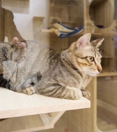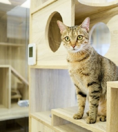 有間貓旅的每一間貓房都配有全新的專用貓抓板,絕不和別人混用沾染氣味,幫前來度假的貓咪們建立自己專屬的核心領域與空間。全台唯一的頂天立地貓跳台及蜂巢六角貓跳台是活動時間最愛攀爬的場所;本館特別訂製的木製骰子貓窩則是散步休息、擬獵埋伏最佳據點。在這裡,貓咪可以安心的探險,也可以開心的與貓褓姆們玩樂。