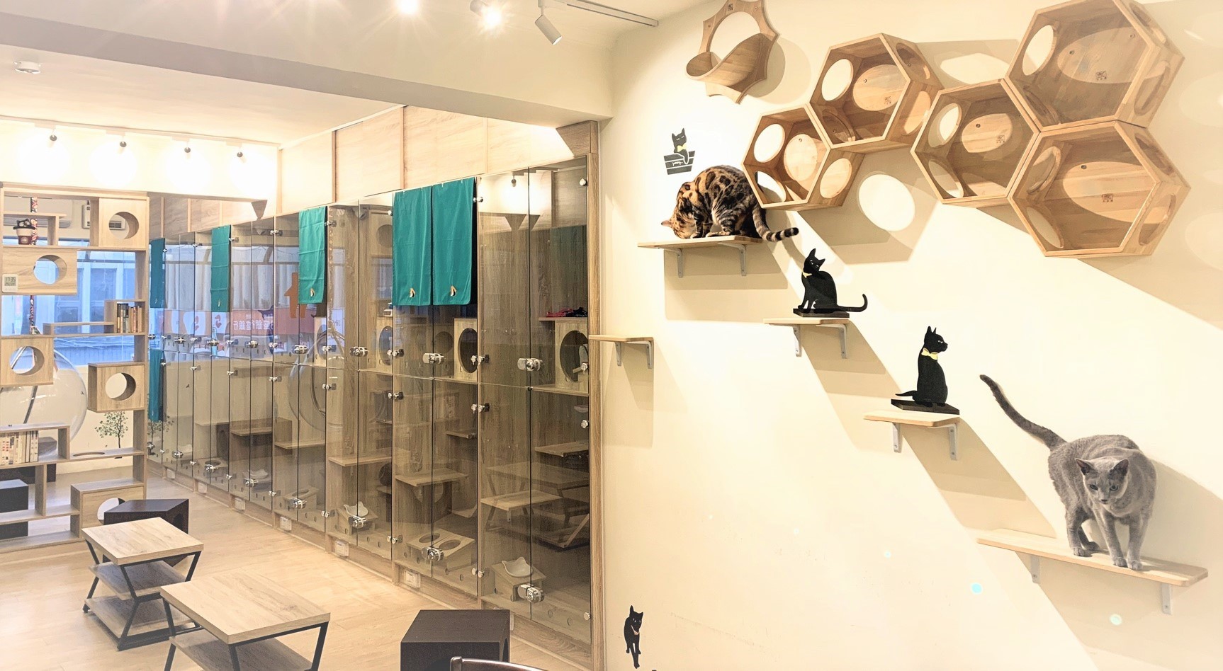 為抱持著這樣的服務信念,我們專注在貓旅館內每一間貓房與公共空間的設計:各種高度相銜接的跳台、隱密的躲藏空間與小閣樓,可隨意堆疊轉向的骰子貓窩,多重選擇的遊樂動線,為住宿貓咪構築了各自獨立專屬的核心領域,以及豐富多變而不互相干擾的公共活動空間。