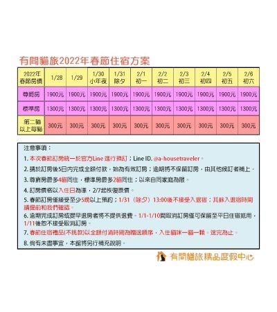 感謝大家的熱烈支持,開放訂房不到半小時,有間貓旅2023春節...